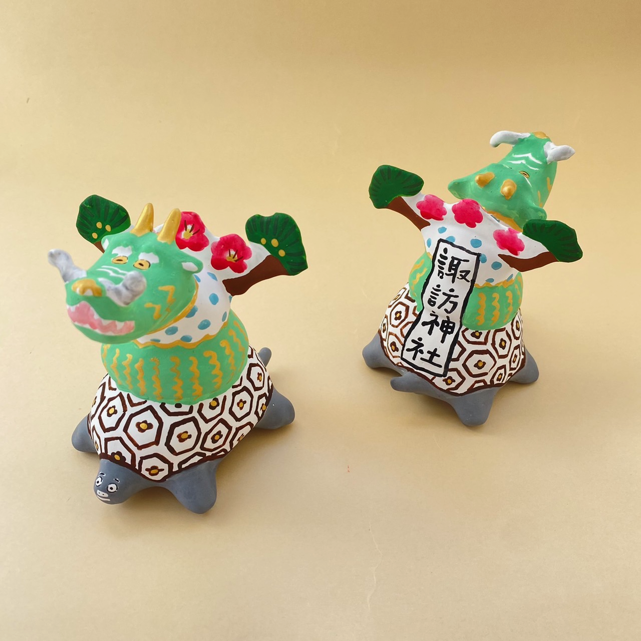 張り子作家の「アトリエおはよう」さんに、海亀の絵馬を謹製していただきました。 寄居諏訪神社は昭和初期まで半農半漁であった寄居村の鎮守として親しまれてきました。かつての寄居浜は海亀の生息地。社殿には当時の漁師より奉納された海亀の甲羅が奉られており、長年に渡りこの場所から人々の願いを見守り続けてきました。 絵馬の裏側にお名前と願い事を書いて神社にお納めしますと海亀が神様に願いを届けてくださいます。
